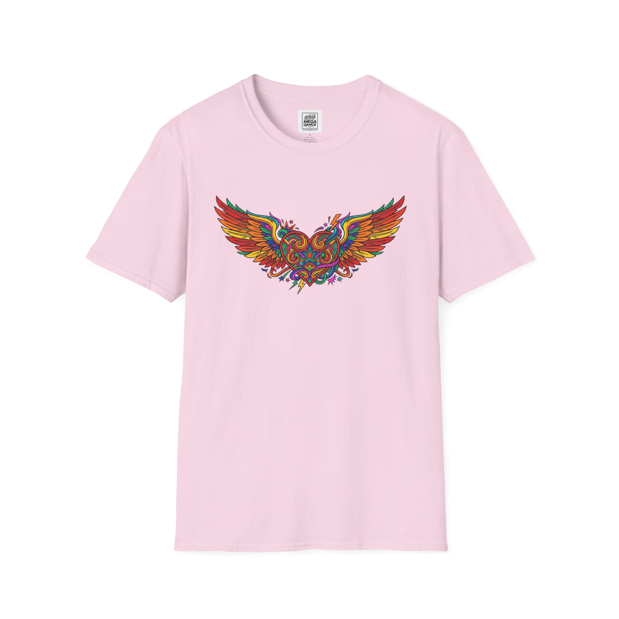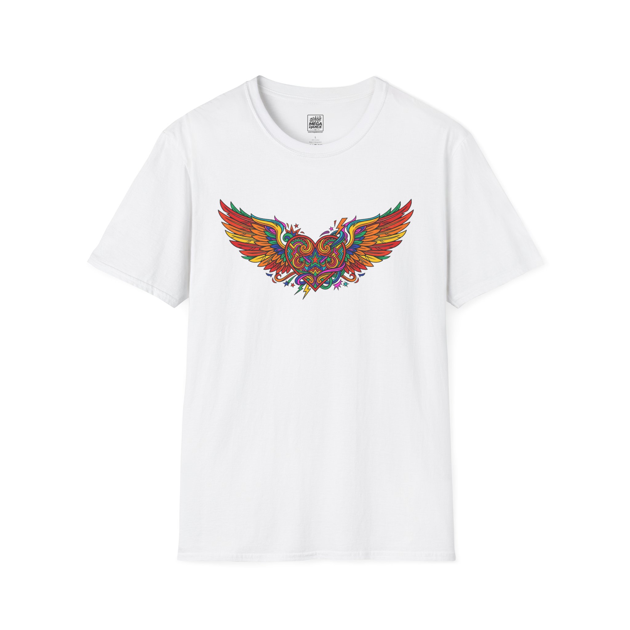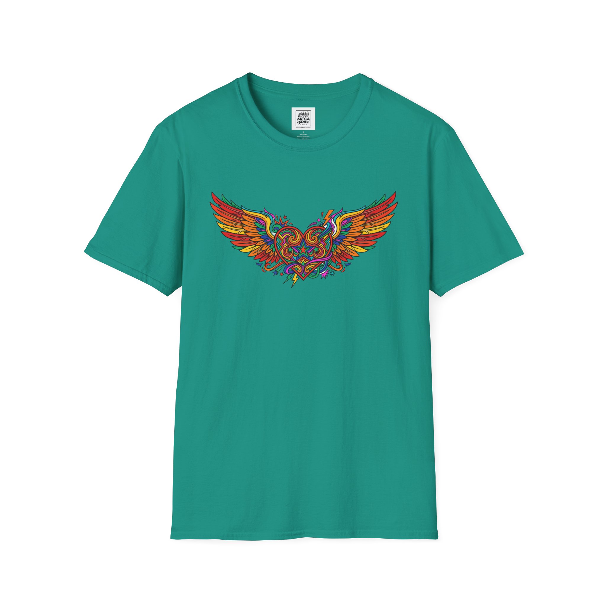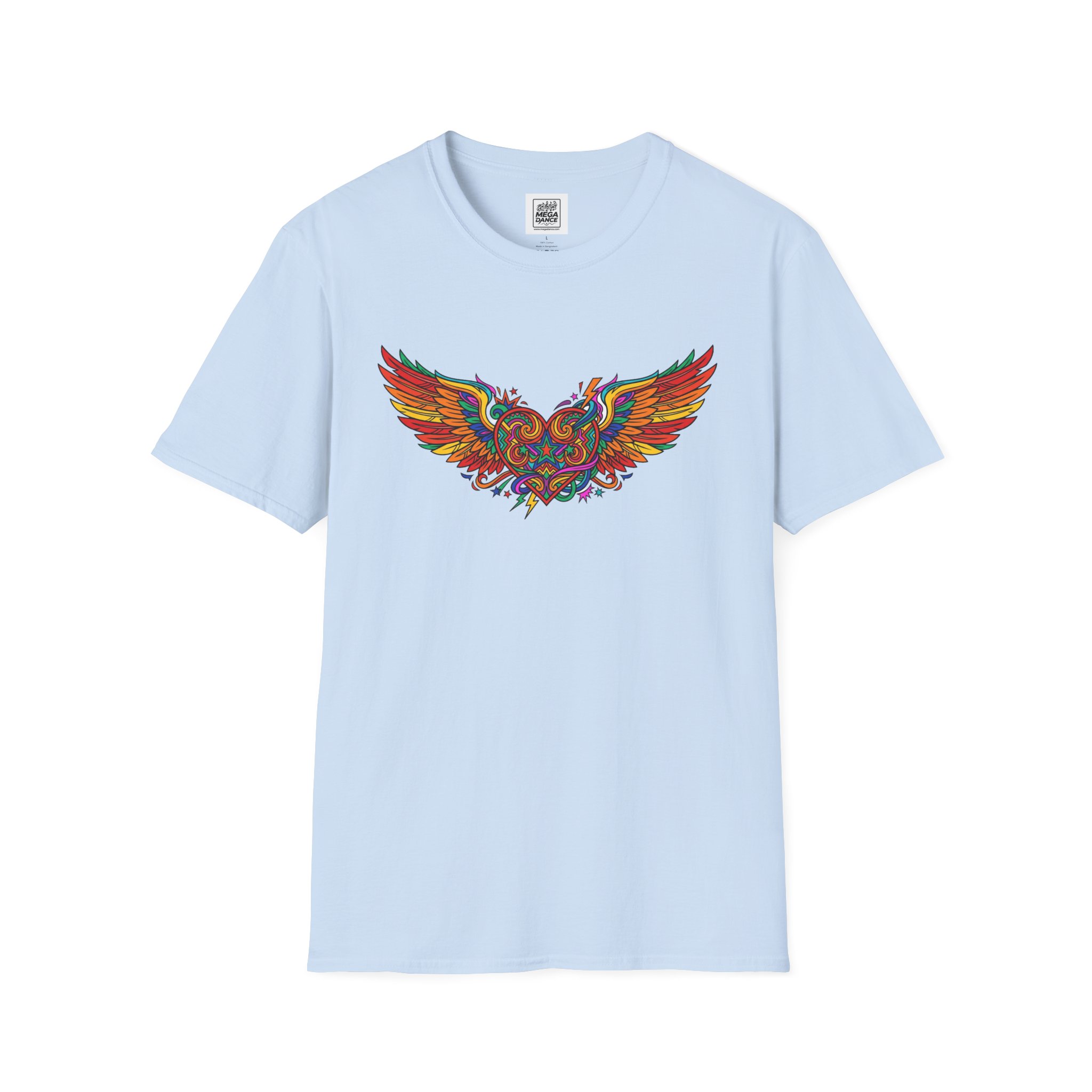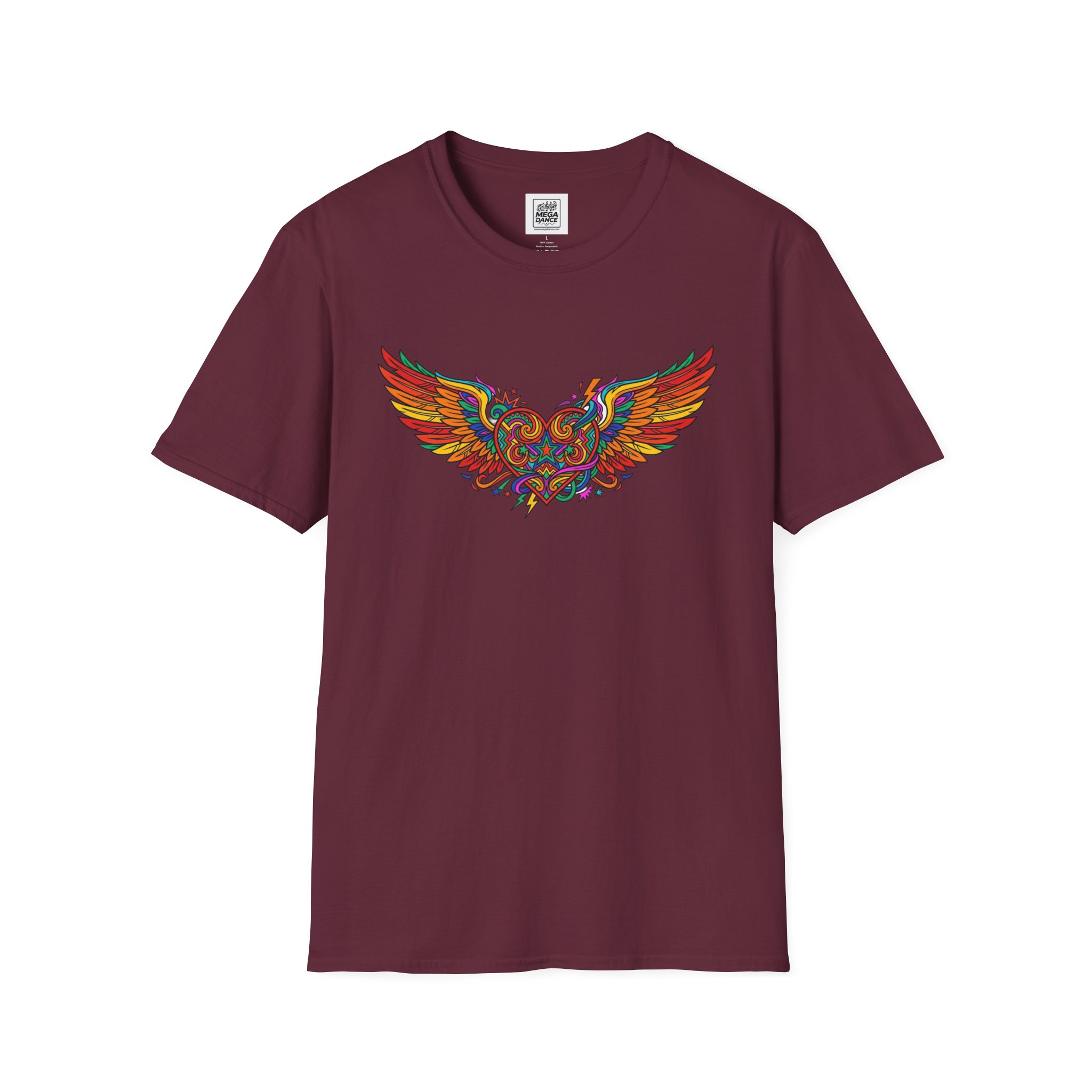 This lightweight crew-neck tee carries a bold, colorful winged design that feels alive—vibrant reds, golds and blues arc across the chest like a small burst of motion. The fabric is soft and breathable, sitting close to the skin without clinging, so it layers easily under a jacket or stands on its own when you want the art to speak. It settles into everyday life: mornings with coffee, open-road rides, gallery nights, or late-evening bonfires. The tear-away label and reinforced shoulder tape keep comfort consistent, and the tubular knit gives a clean silhouette that won’t wrinkle with movement. For people who collect wearable art and care about construction, this shirt blends bright, detailed graphics with thoughtful, long-lasting build quality.