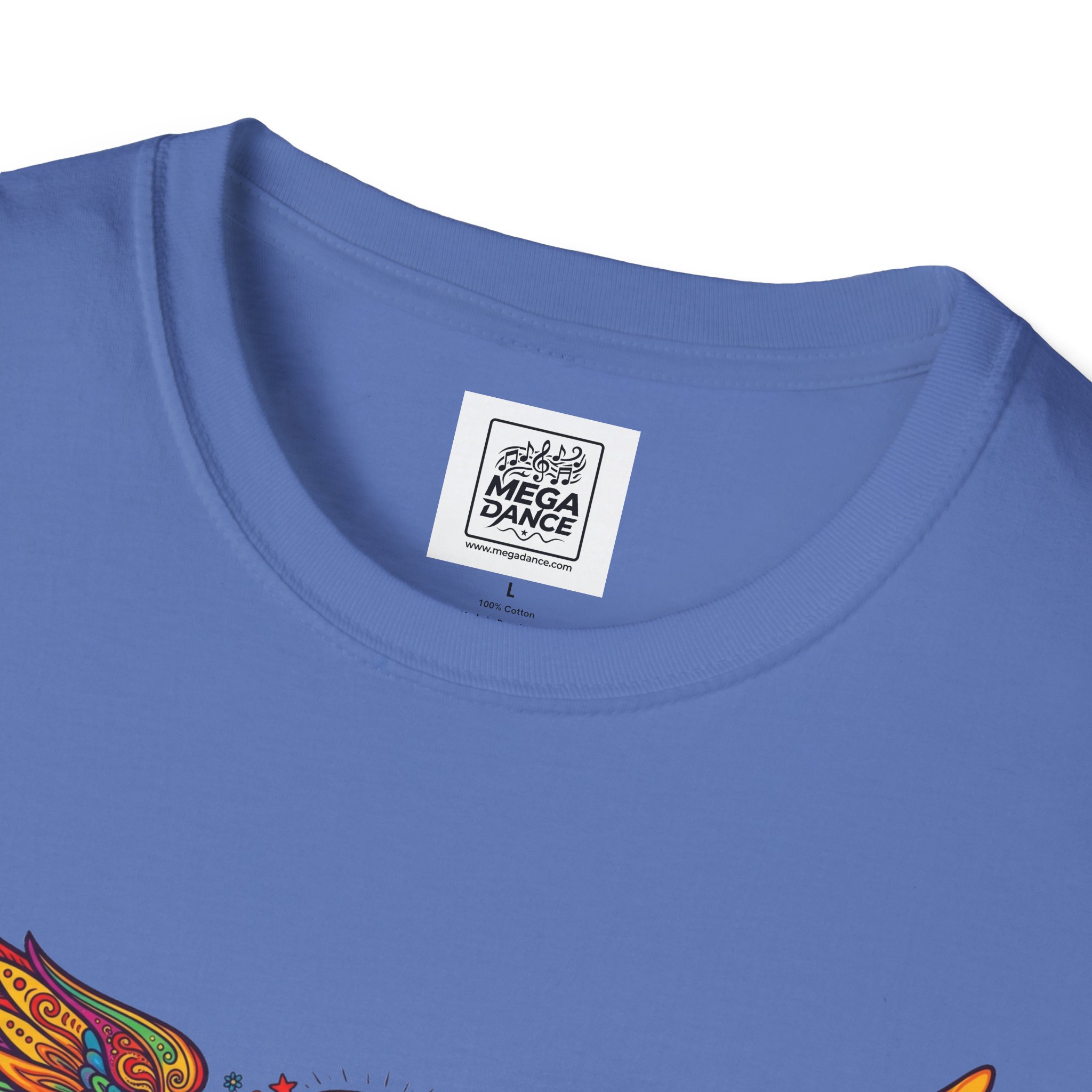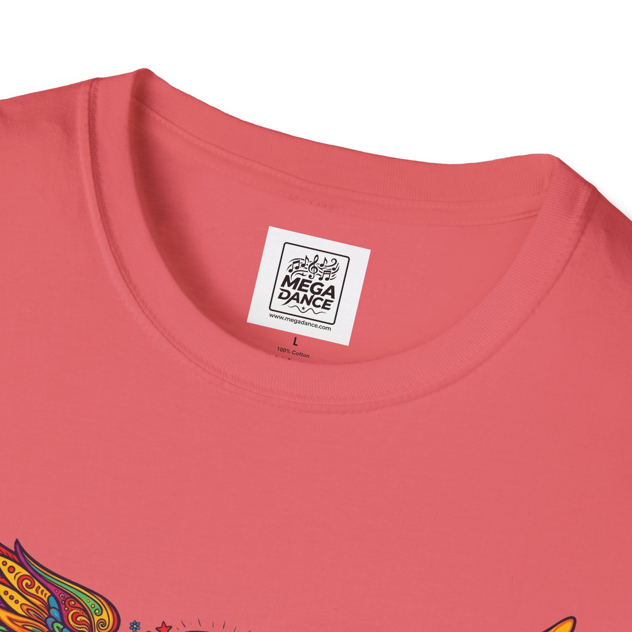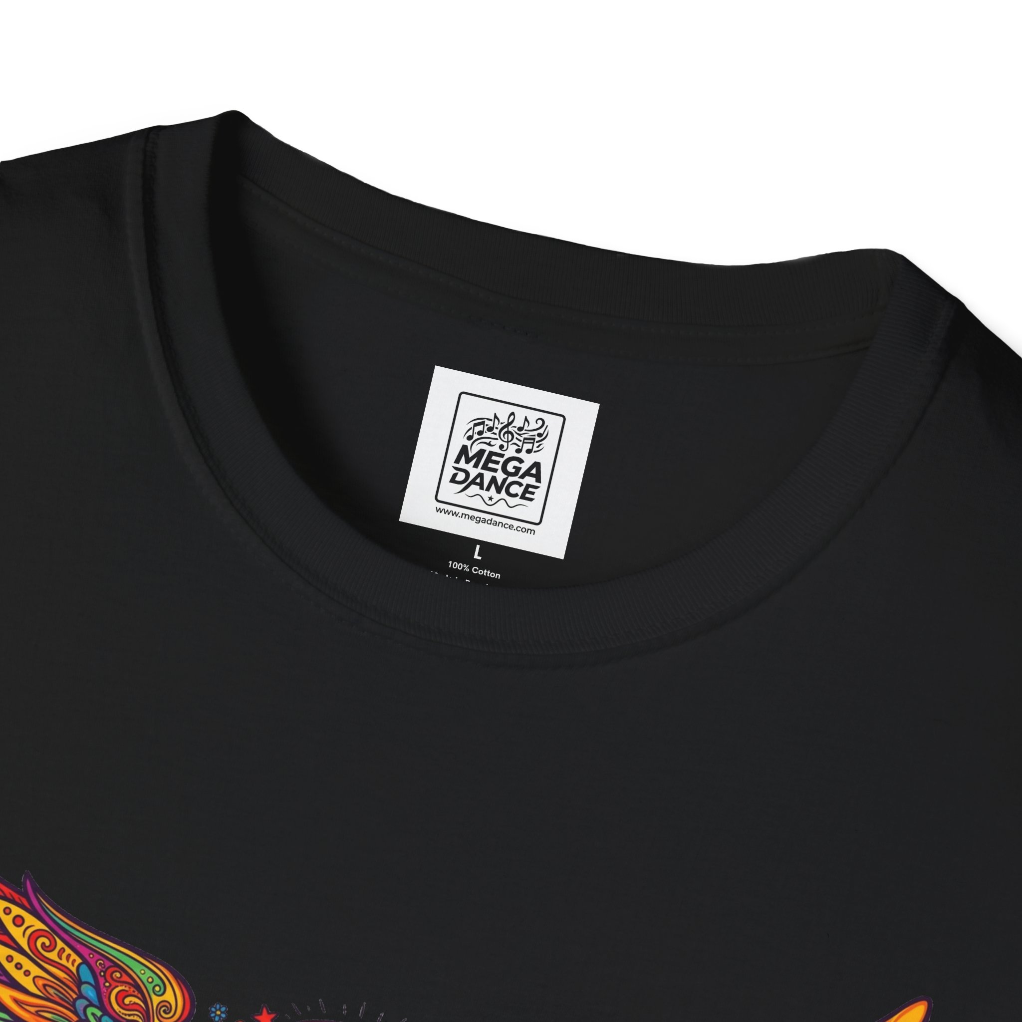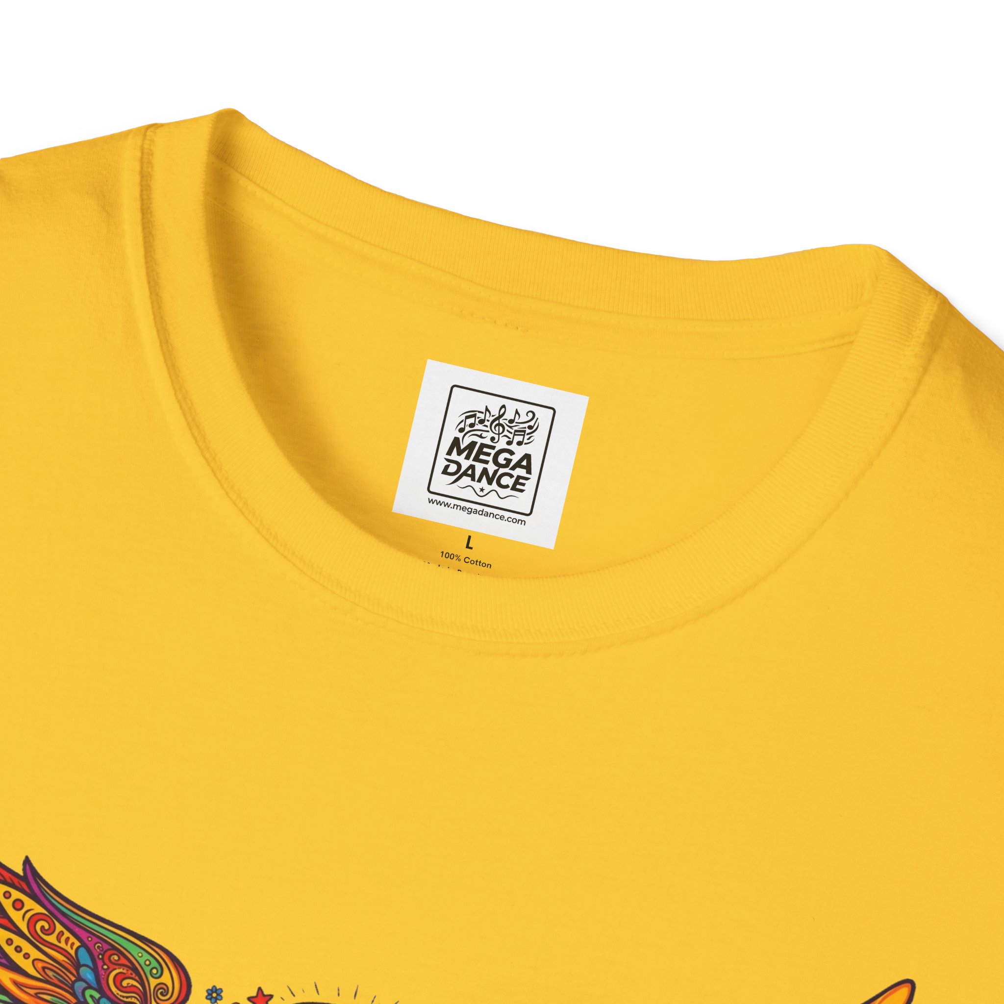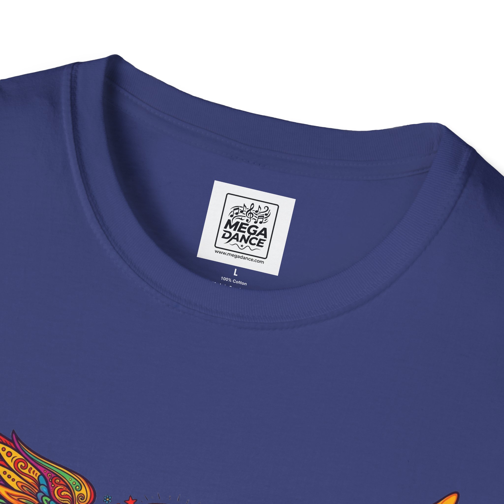A soft, lived-in tee that carries a sunlit, freewheeling energy. Bright, hand-drawn wings spread across the chest around a peace-symbol crest, rendered in warm, psychedelic tones that feel like a summer road trip and a late-night bonfire at once. The lightweight ring-spun cotton drapes easily, so the artwork sits naturally on the body without stiffness. Wear it to concerts, park mornings, or when you want a subtle nod to vintage festival style — it moves with you and keeps the design front and center.