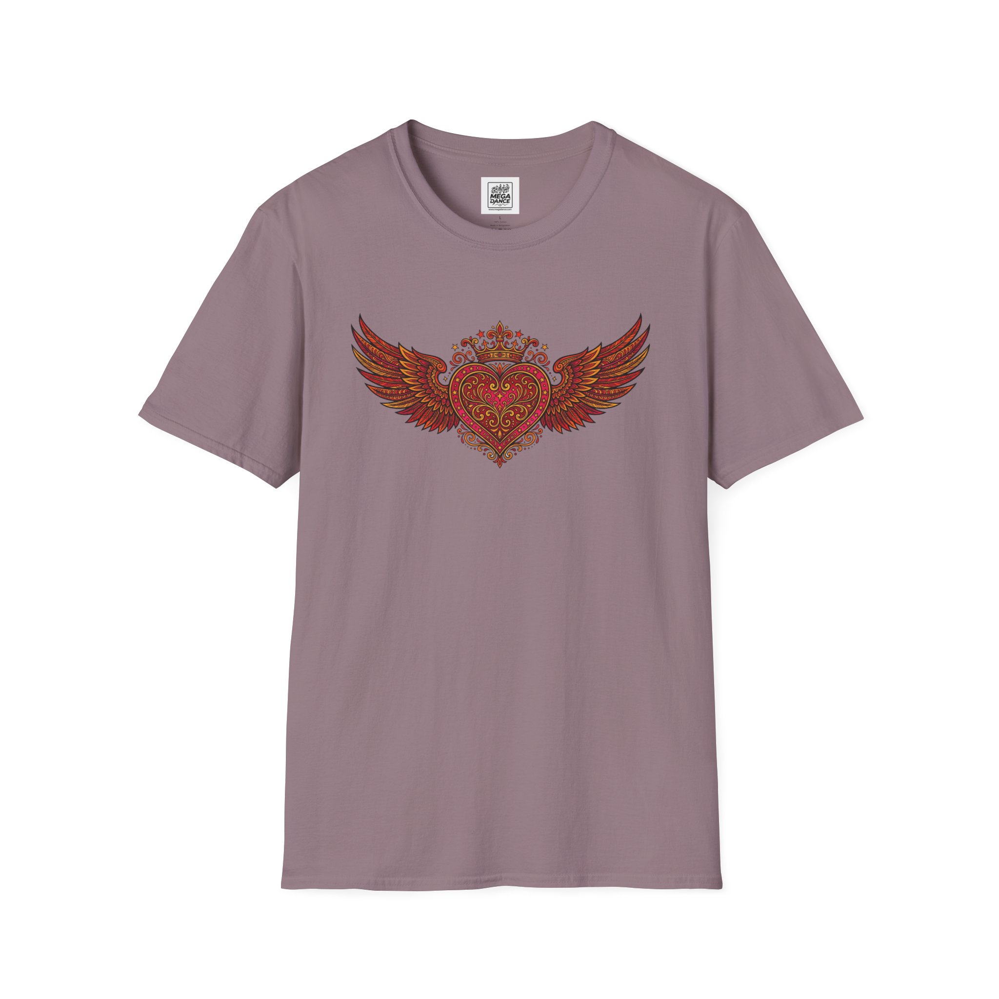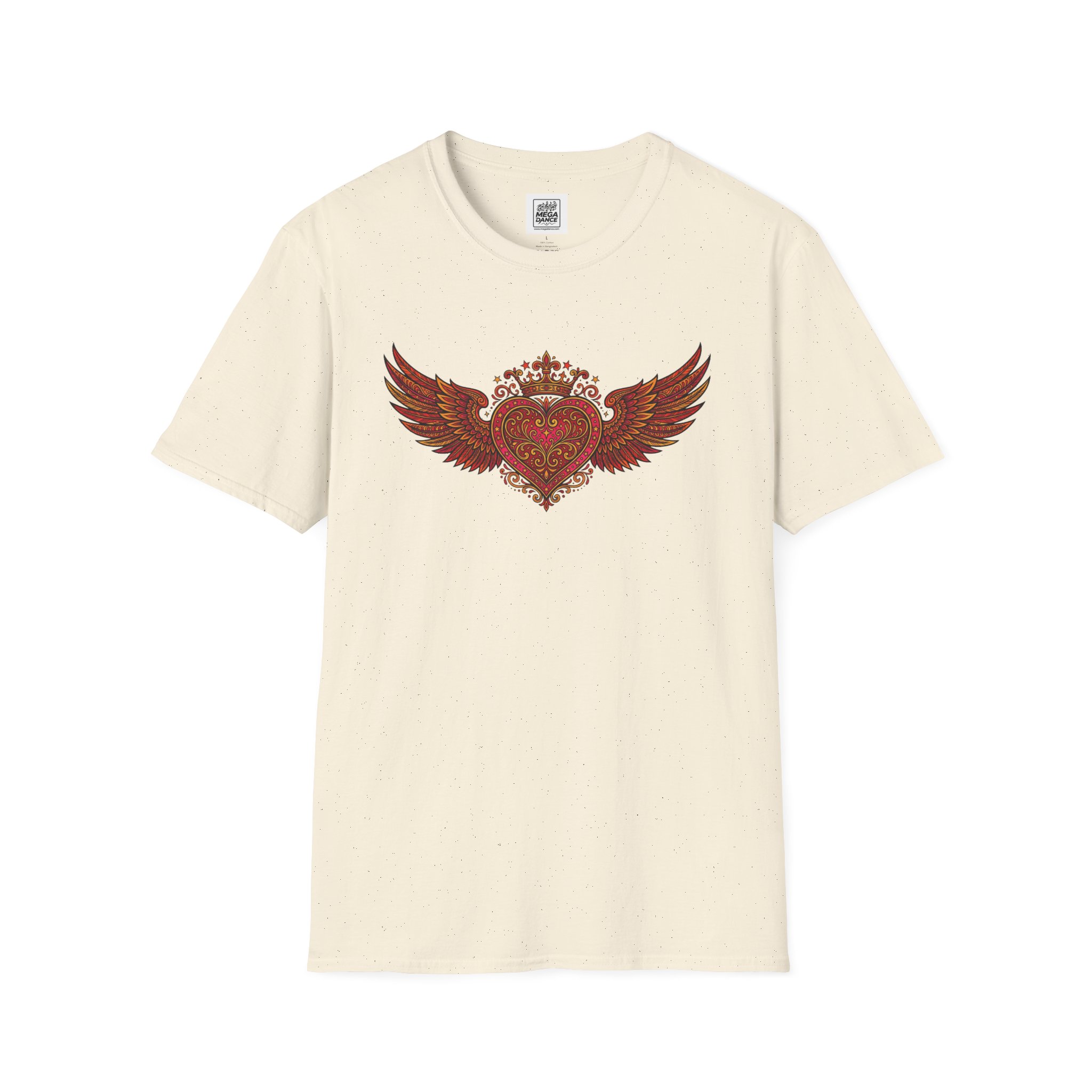 This lightweight cotton tee carries a bold, heart-and-wings design that feels equal parts vintage rocker and tender storyteller. Soft against the skin, the shirt’s classic crew neck and clean fit let the artwork sit centerstage — a crowned heart with feathered wings, filigree details and a slightly worn, hand-drawn look. Wear it to channel late-night road-trip energy, a low-key concert, or a coffee-shop afternoon where memories and playlists collide. The fabric breathes, the collar keeps its shape, and the understated natural flecking on some colors adds lived-in character that pairs well with denim, leather, or layered jackets.