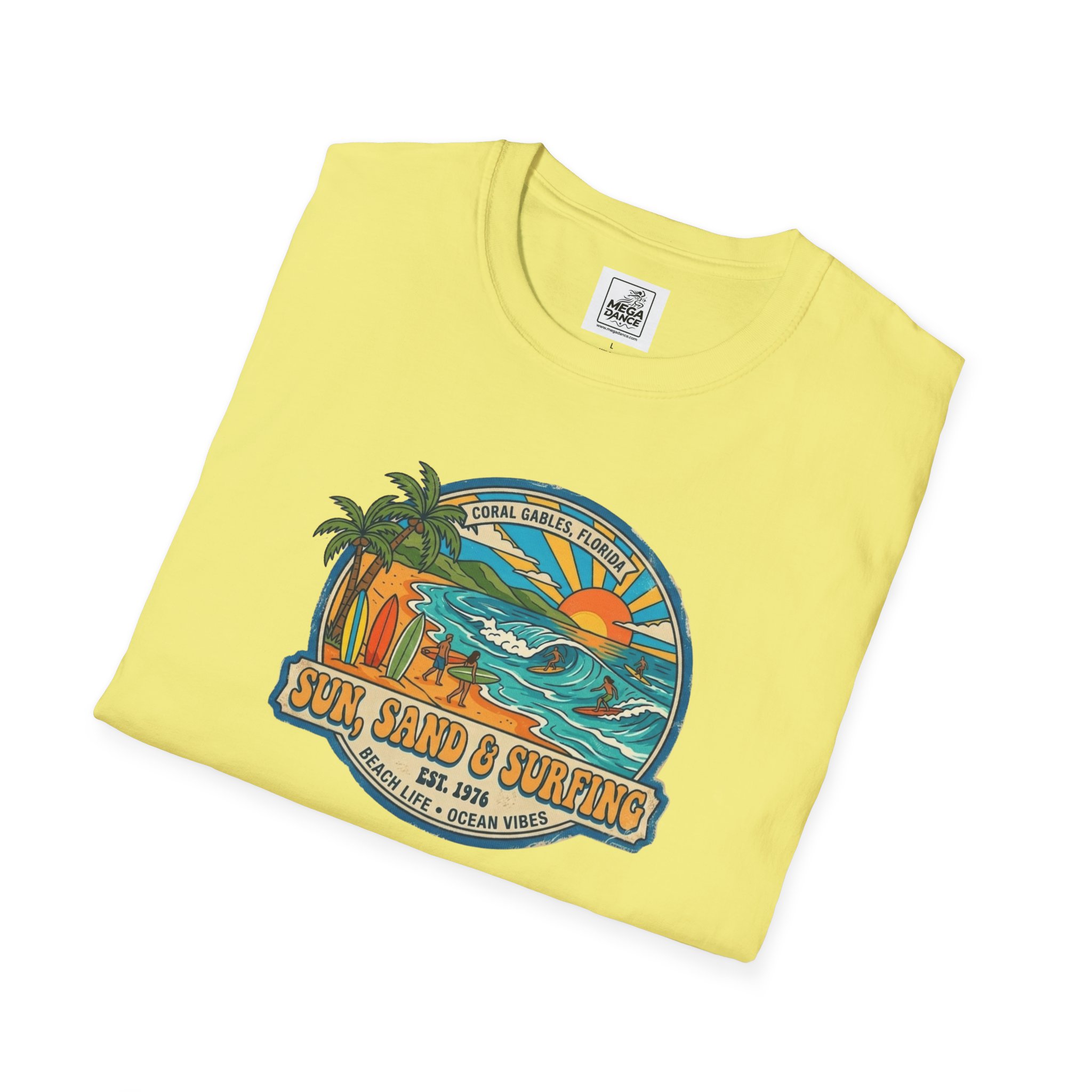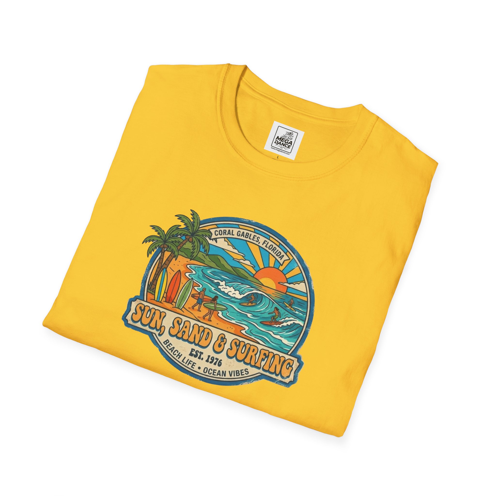 Sun, Sand & Surfing (Unisex Softstyle T-Shirt)