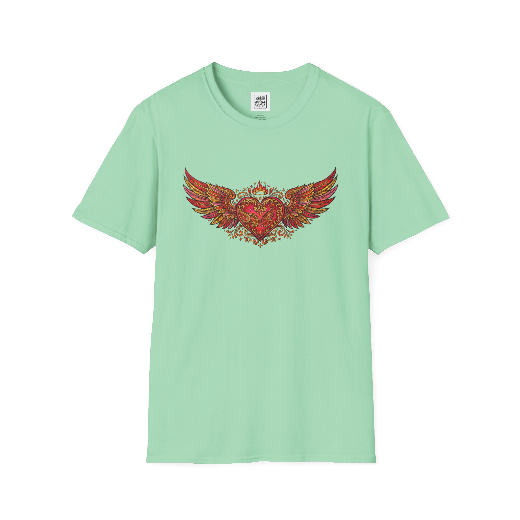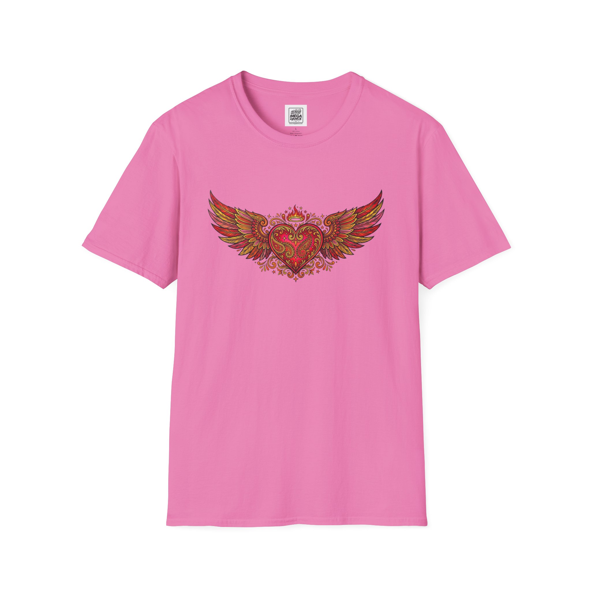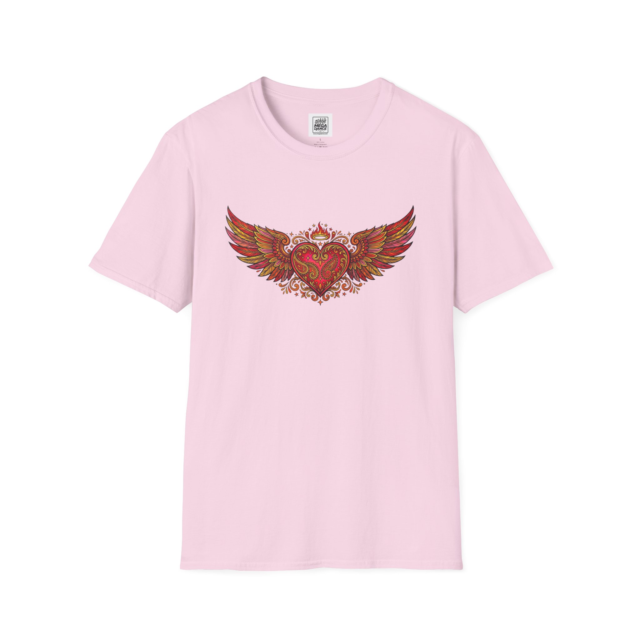 This lightweight crewneck shirt carries a bold, hand-illustrated heart with outstretched wings across the chest — a little bit outlaw, a little bit romantic. The soft ring-spun cotton drapes easily and breathes all day, while the classic fit and clean neckline keep the artwork front-and-center. Wear it on long drives, nights around a fire, or when you want to quietly declare loyalty, love, or reclaimed strength. The tiny natural flecks in the undyed option and the pearlized tear-away label add subtle, lived-in character without distracting from the design. Built to last and made with responsibly grown cotton, it’s the kind of tee you reach for when you want an honest, worn-in look with a graphic that still turns heads.